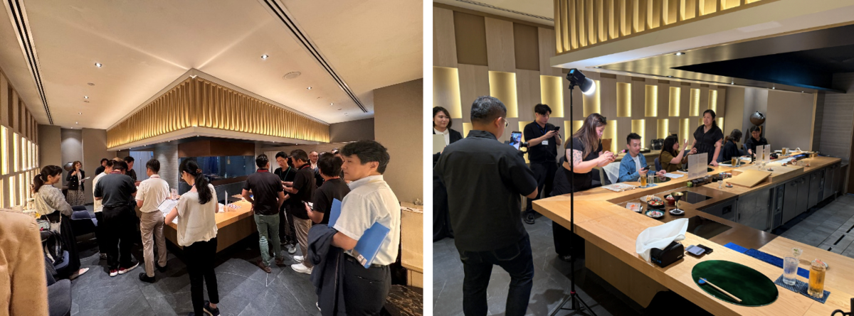 期間限定特別メニューの提供に先んじて同店舗を会場としてお借りし、参画事業者に業界関係者と商談の機会を提供するための商談会と、”日本産”食肉加工品の現地での認知度向上と需要喚起を目的としたプレス招待会も開催しました。商談会では、高級日本料理店で”日本産”食肉加工品の活かし方が分かる企画メニューを実食でき、かつ一度に複数事業者と商談できるという、業界関係者が“来たくなる場”を作ったことにより、参加希望者を増やすとともに、商談効率も高めることができました。